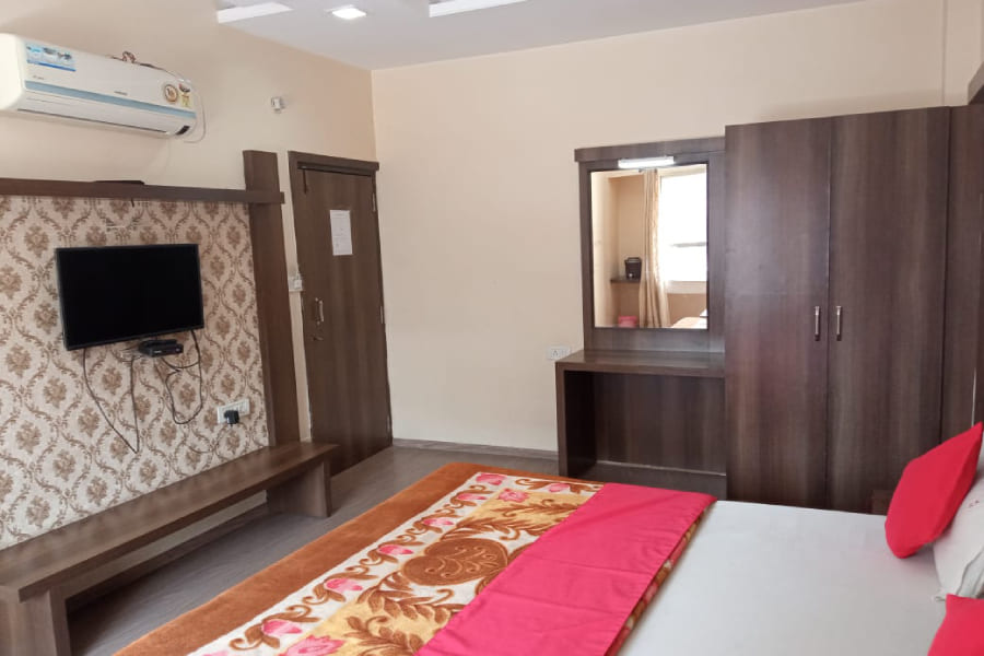 The AC Super Deluxe Room is thoughtfully designed to provide a perfect blend of comfort, space, and modern convenience. Elegantly furnished with a comfortable bed, stylish interiors, and soothing lighting, the room creates a relaxing atmosphere for guests after a long day of travel or sightseeing. It is fully air-conditioned to ensure a pleasant stay in all seasons and comes equipped with amenities such as a flat-screen TV, spacious wardrobe, study table, and cozy seating area, making it suitable for both leisure and business travelers.